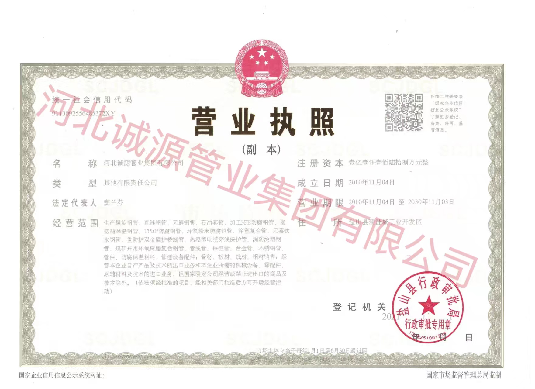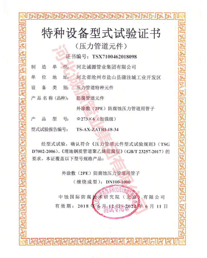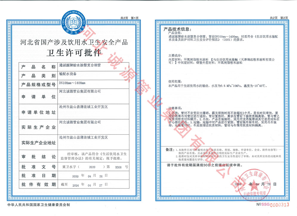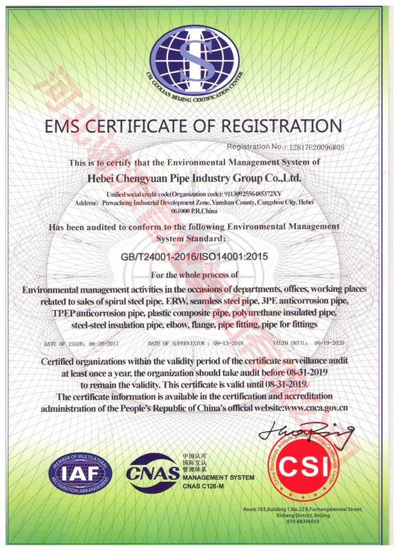 | 职业健康 管理体系认证证书 | 授予:河北诚源管业集团有限公司 | 荣誉证书 |