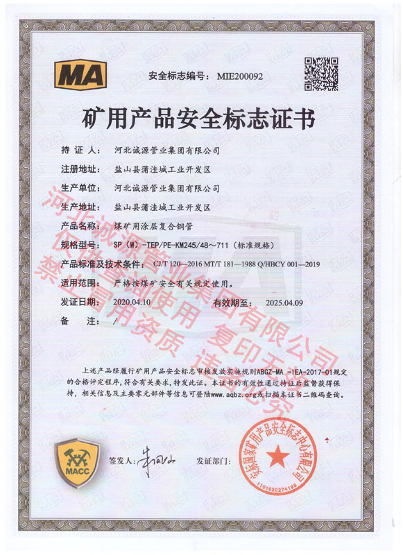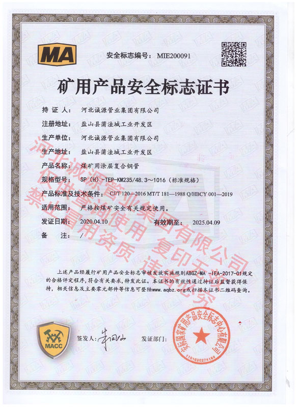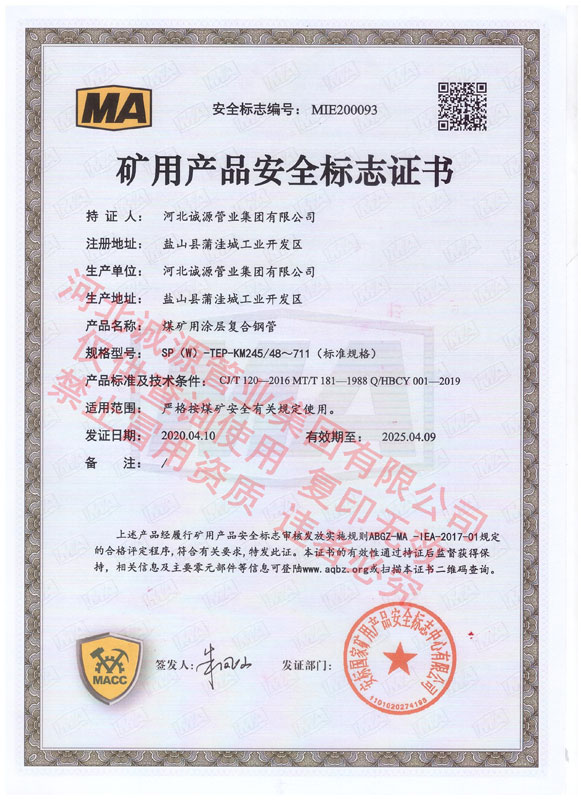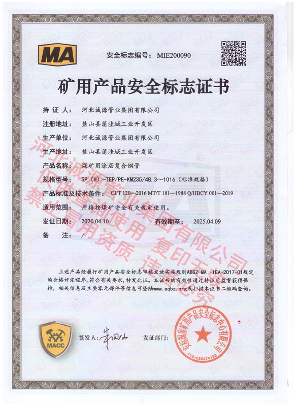 | 矿用产品标志证书 | 矿用产品标志证书 | |